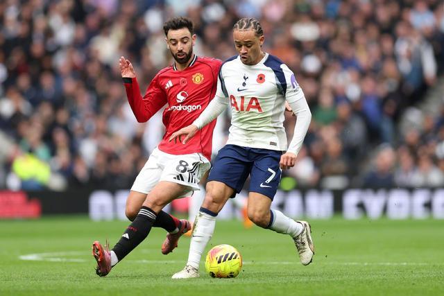 英超第11轮的一场较量中,曼联在上半场结束后暂时客场1-0领先托特纳姆热刺。